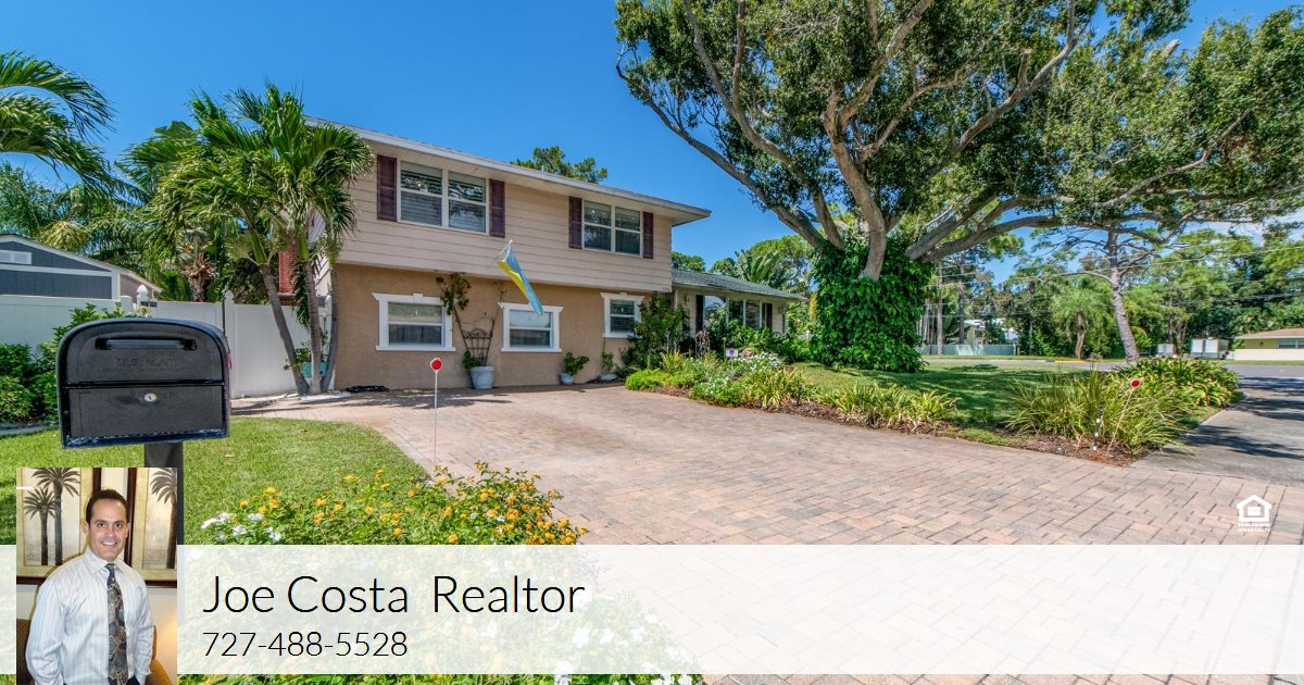 NO FLOOD ZONE and less than 1 mile to the BEACH! Spacious 5 bedroom pool home in Seminole! Split level home with major curb appeal and a lush resort-style back yard! Interior features include crown molding, oak and cherry hardwood flooring through all main living areas, real wood maple cabinetry in the kitchen, along with soft-close drawers and granite counter tops; and two glass-paned pocket doors. Cozy family room just down a few steps from the breakfast nook includes a wood-burning fireplace and access to the back yard, covered patio and the inviting swimming pool. One bedroom, one bath and laundry (with laundry chute!) downstairs. On the upper floor, there are 3 bedrooms including the primary bedroom with an ensuite bath, a third full bath, plus a 5th bedroom currently used as an office, which overlooks the landscaped back yard. Outside is an entertainers dream! Generous-sized pavered patio extends all the way across the back of the home, with partial sun exposure outside the sitting room access. Covered patio includes a bar setup, mini fridge, sink and a large poolside pizza oven! Saltwater swimming pool with newer control panel. Plenty of space for family and friends among a beautifully maintained back yard area! Other updates include new pool pump, remodeled kitchen, and water heater just 2 years old. Water softener included. Sprinkler system uses reclaimed water. This home has been well-maintained and is located in a great location in desired Seminole - close to everything - shopping, entertainment, restaurants, parks and the Beach!
